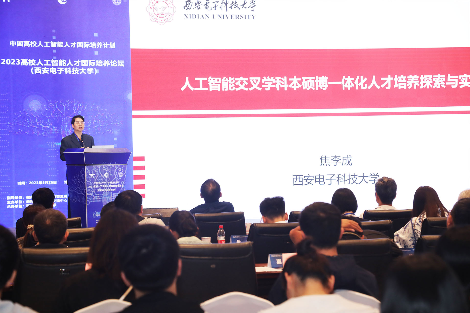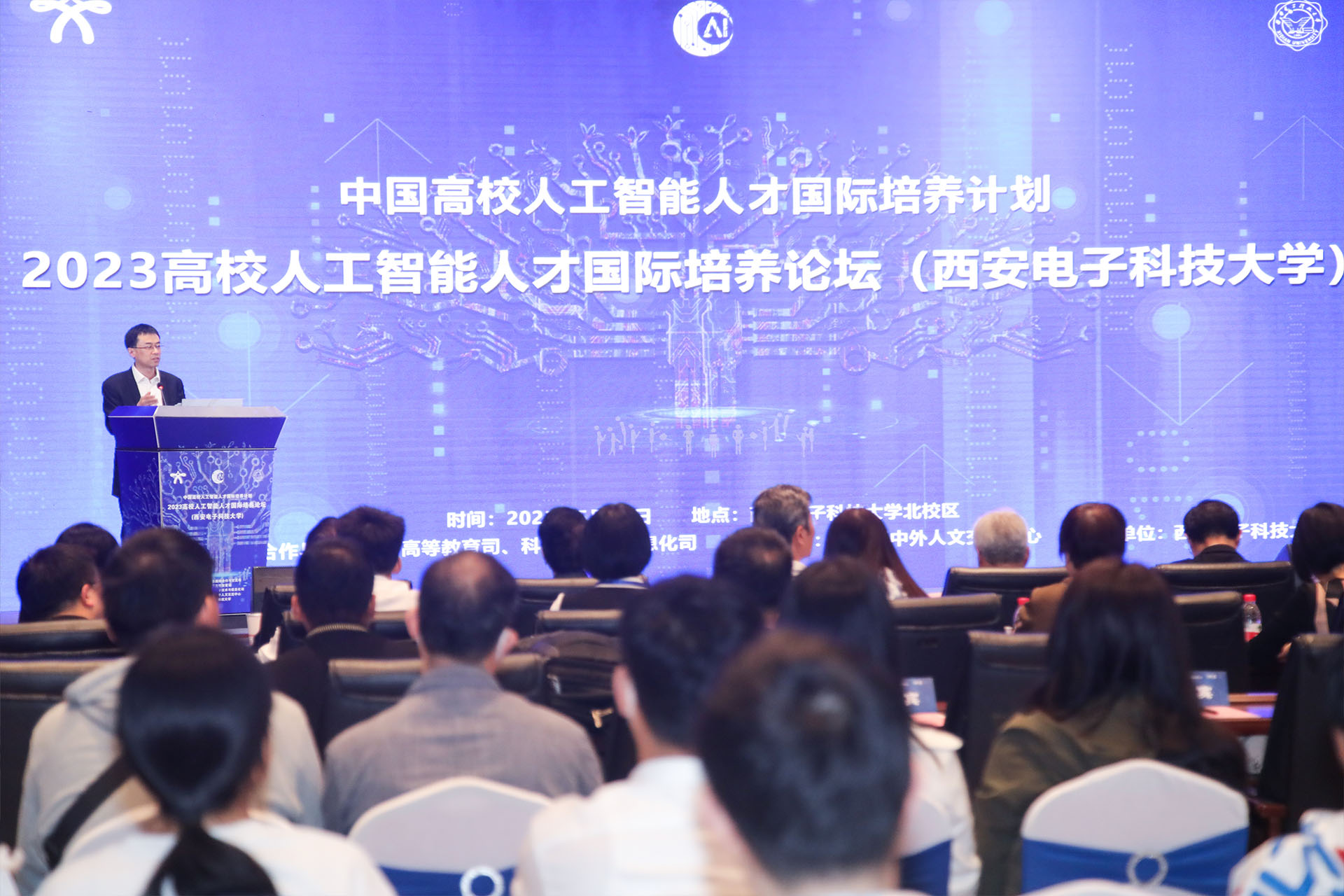 5月26日,由教育部國際合作與交流司、科學技術與信息化司、高等教育司指導,教育部中外人文交流中心主辦,西安電子科技大學承辦,以“新時代人工智能,賦能教育變革”為主題的2023高校人工智能人才國際培養(yǎng)論壇在西安電子科技大學科技樓報告廳舉辦。本次論壇旨在探討人工智能對教育領域的革新和影響,促進國際間人才培養(yǎng)的合作與交流。來自國內外的領域專家、學者和教育界代表齊聚一堂,分享獨到經驗,互學互鑒,共同探索人工智能與教育的深度融合,為推動教育變革注入新動力。論壇通過線上線下相結合的方式舉行,共吸引了210余萬人次參加/觀看。